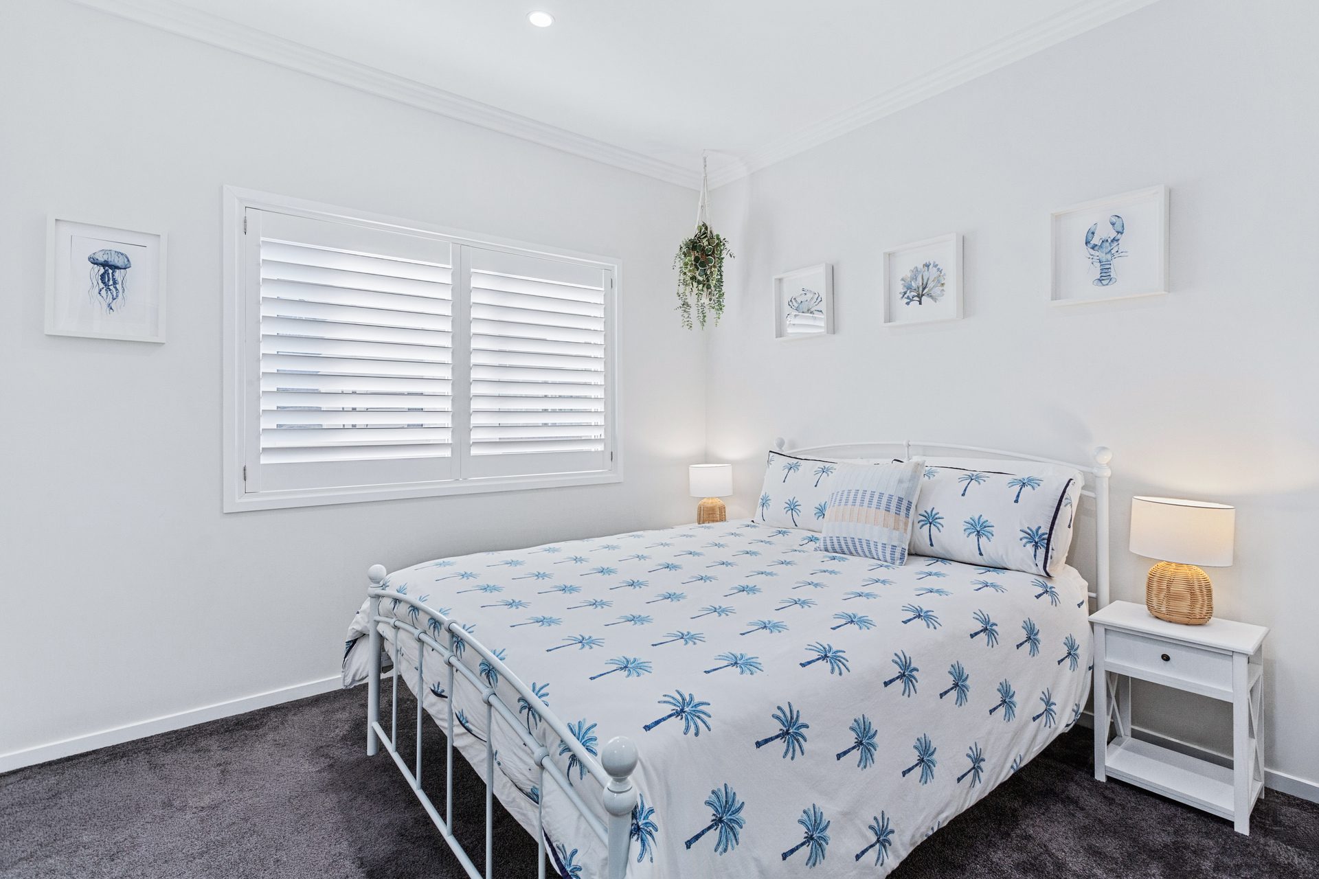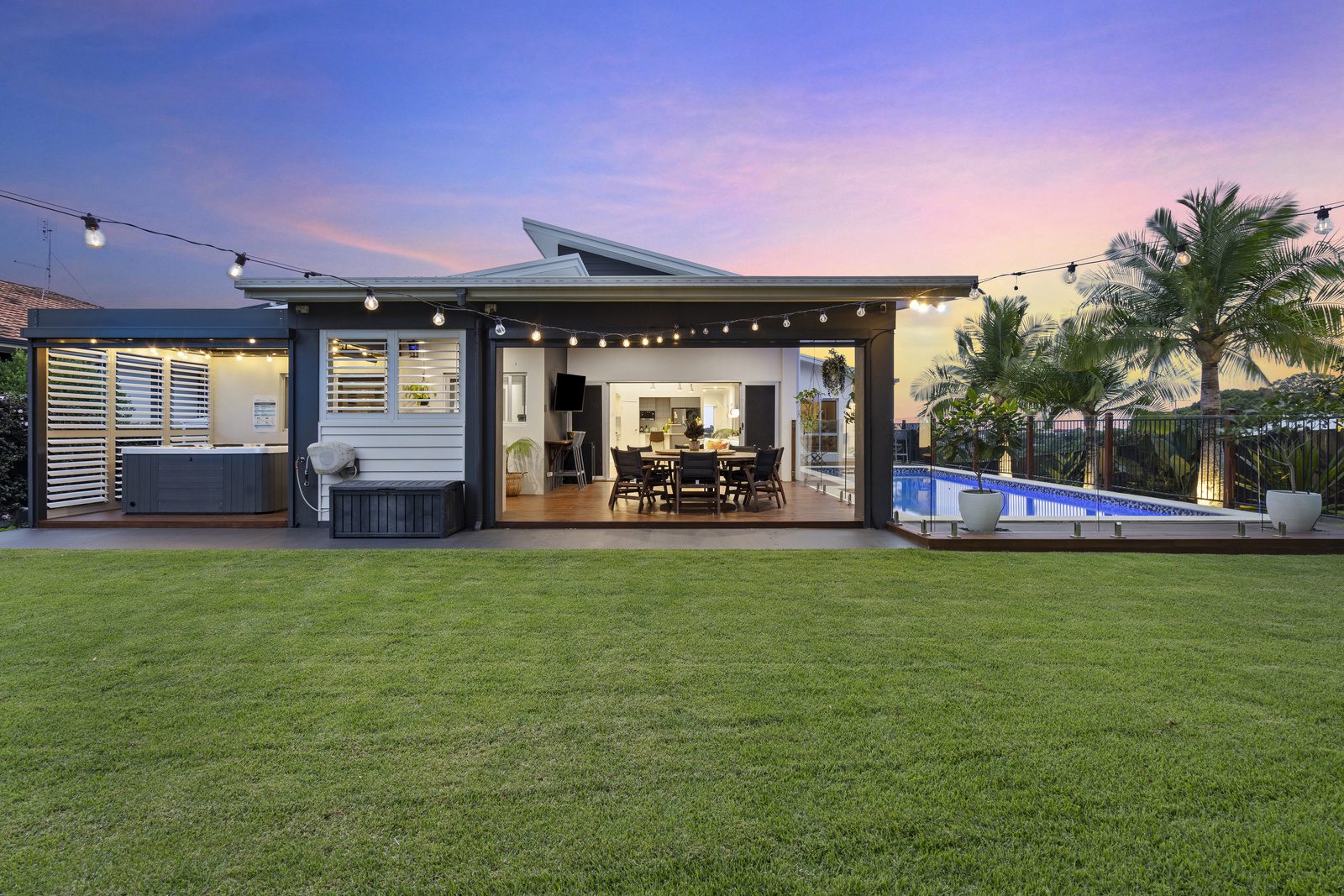 Outdoors, the home transforms into a private resort-style retreat. Designed for year-round enjoyment, the space features a heated magnesium pool and spa, alongside a fully equipped alfresco entertaining area complete with a motorised louvre roof, outdoor blinds, built-in BBQ, heating, and a mounted TV-creating the ultimate setting for relaxed coastal living and effortless entertaining.