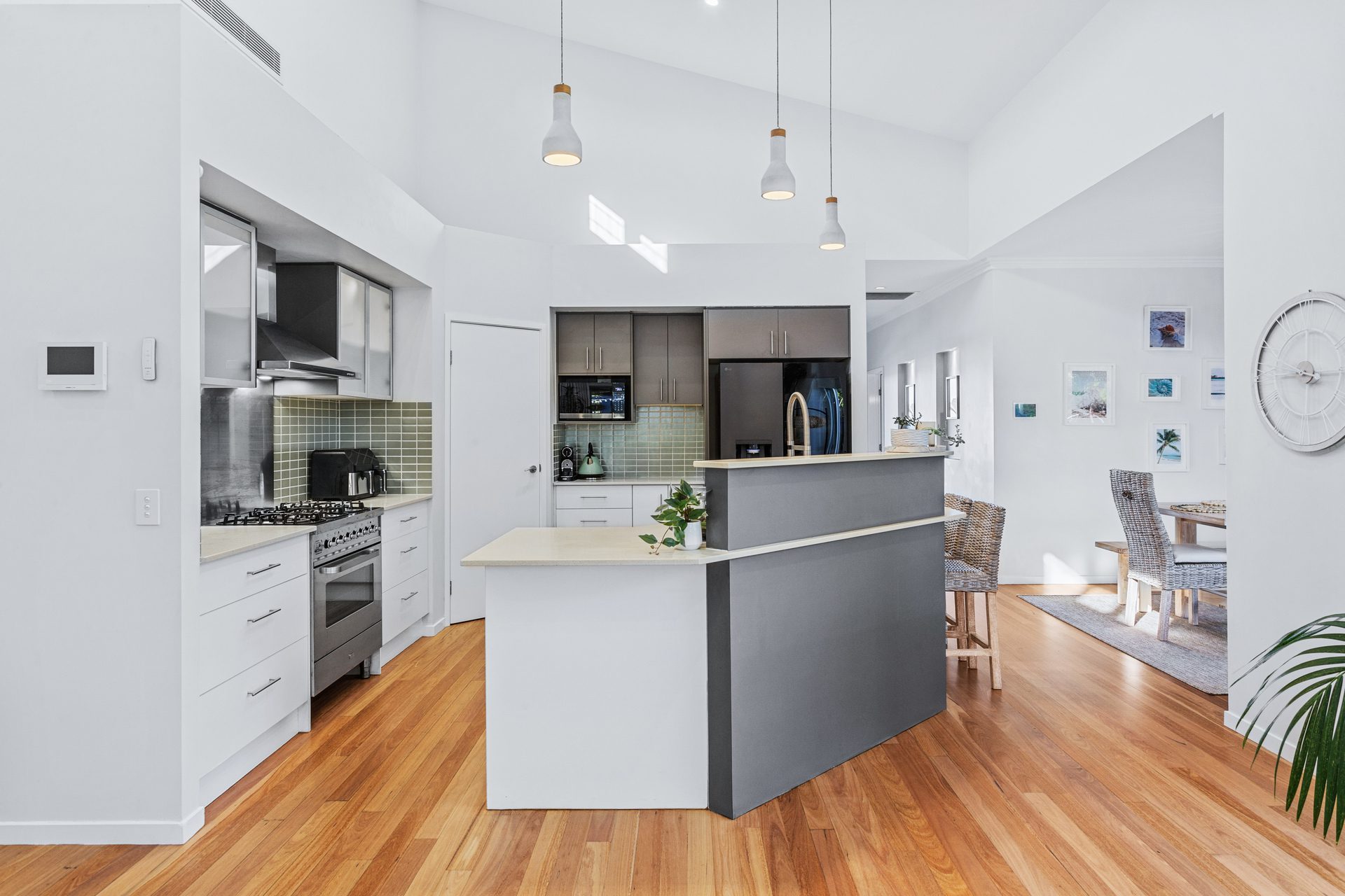 At the heart of the home, the designer kitchen is appointed with quality appliances and generous bench space, seamlessly connecting indoor and outdoor living zones for both everyday functionality and entertaining.