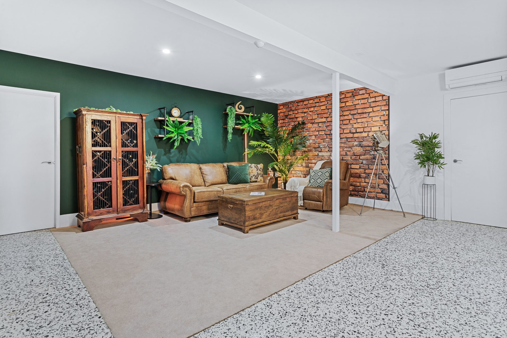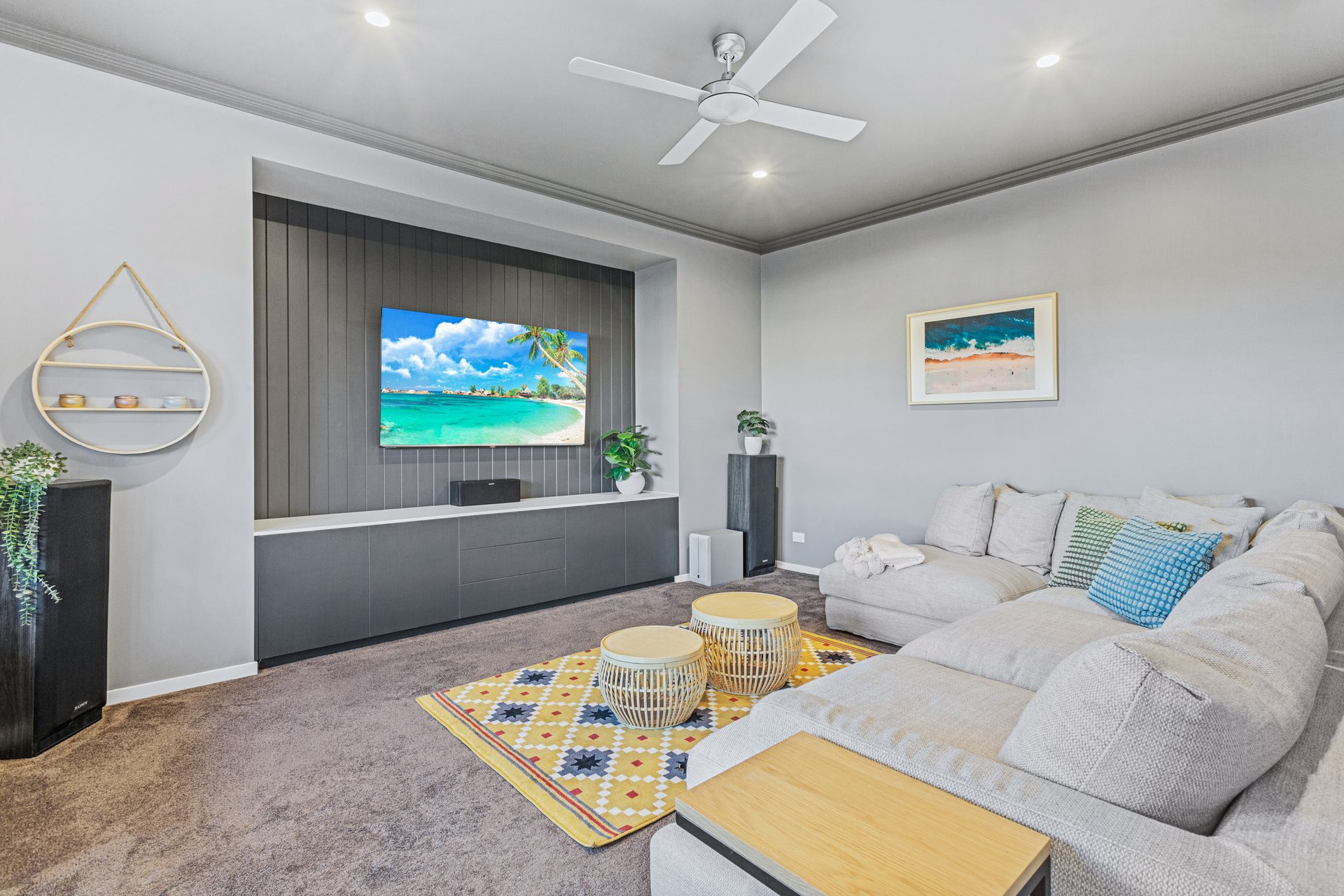 Thoughtfully designed for modern family living, the interiors reveal multiple living and dining zones enhanced by high ceilings, timber flooring, and an abundance of natural light. A dedicated soundproof cinema room with full surround sound creates a true at-home theatre experience, while the flexible floorplan includes a private downstairs studio-ideal for guests, extended family, or dual living.