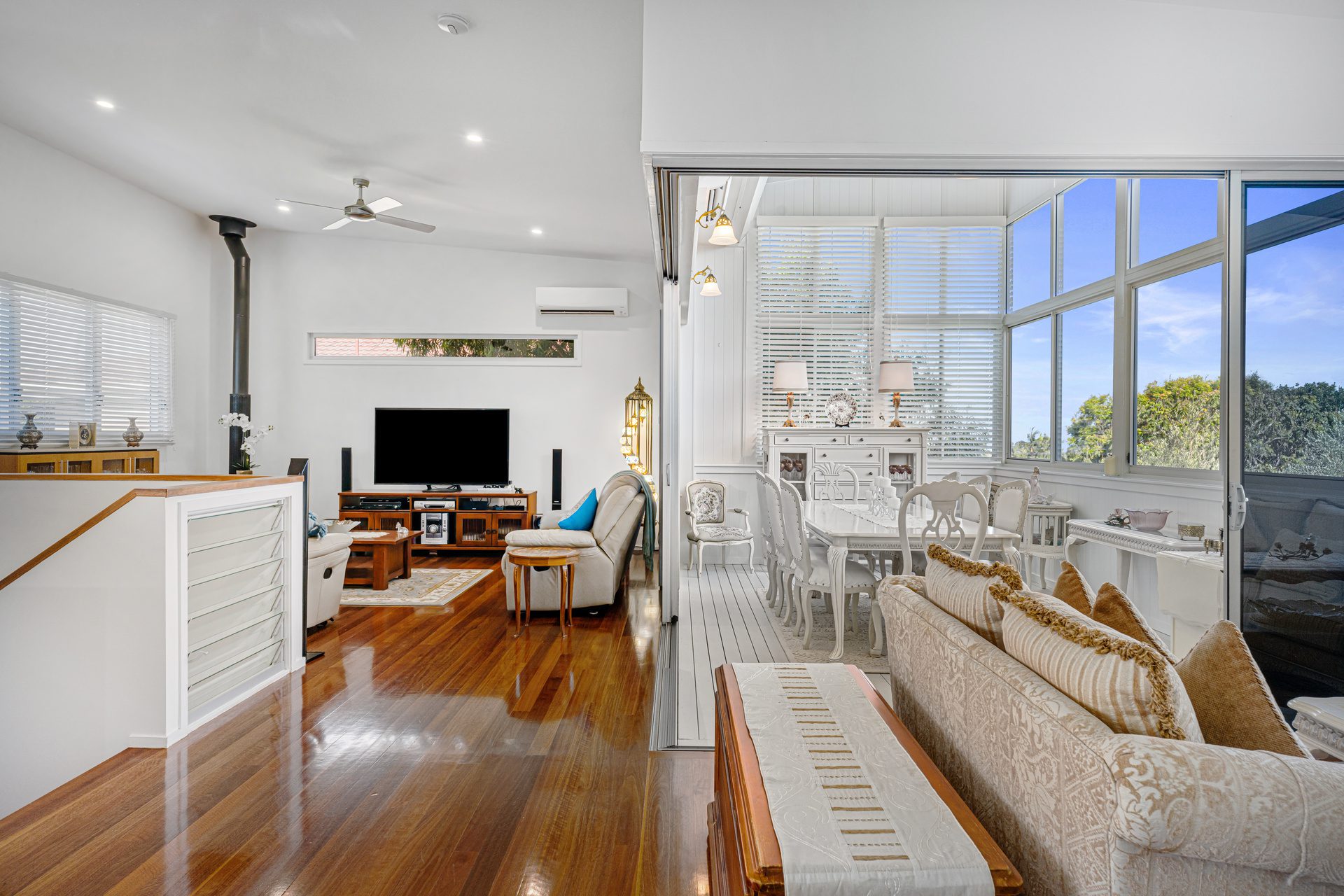– Multiple living areas, including sunroom, family room with cosy wood burner and ground floor lounge