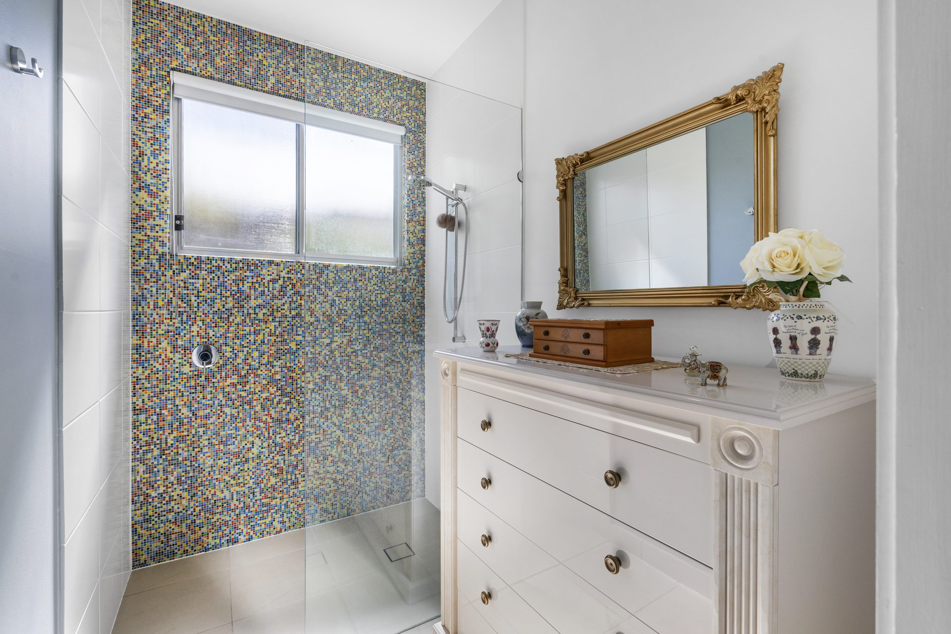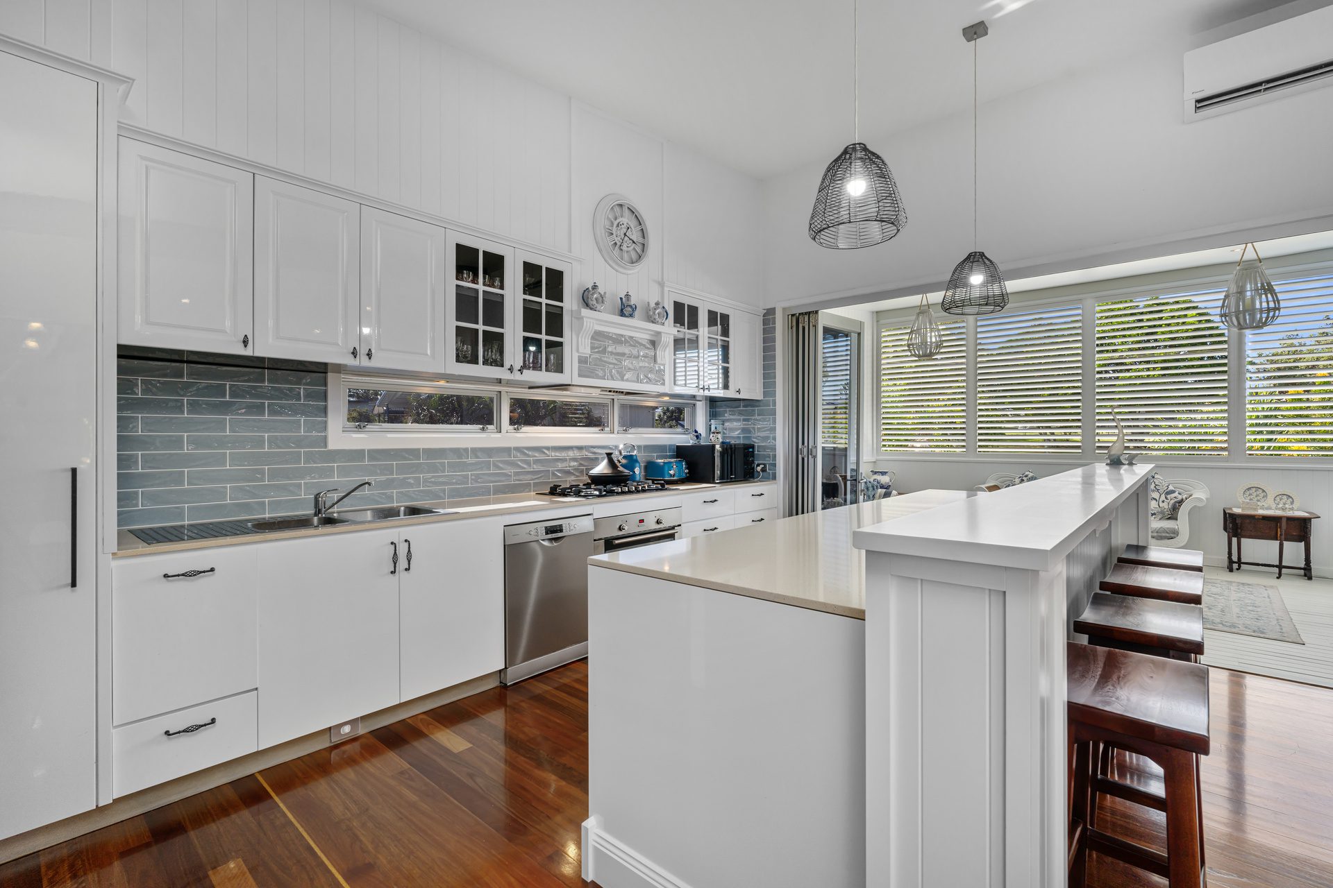 Outside, the narrative of relaxation continues with a covered deck overlooking the solar heated saltwater pool, embraced by established, yet easy-care gardens that equal more time to enjoy the beach lifestyle. There’s even a hot and cold outdoor shower to rinse off after your morning surf! And after a day of adventure, the sounds of the ocean are your soundtrack to sleep come nightfall. Equipped with four bedrooms, this includes a privately placed master suite with ensuite.