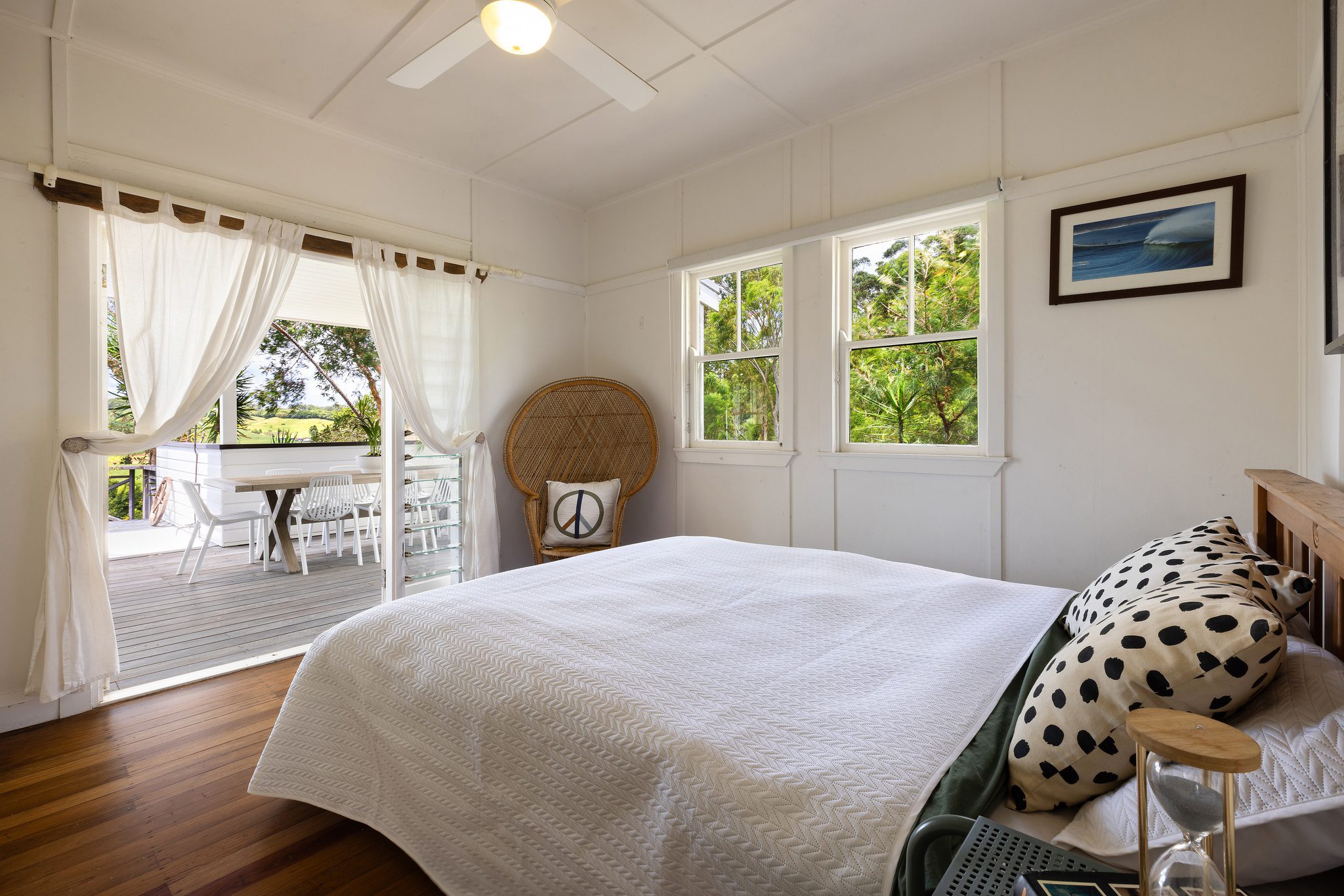 FOUR WINDS is a rare gem perched on a ridgeline, offering breathtaking 360° views and a remarkable sense of space. Surrounded by lush farmlands yet low-maintenance, this stunning home enjoys fresh ocean breezes and a peaceful no-through road and is just eight minutes from the pristine beaches of the Northern Rivers.