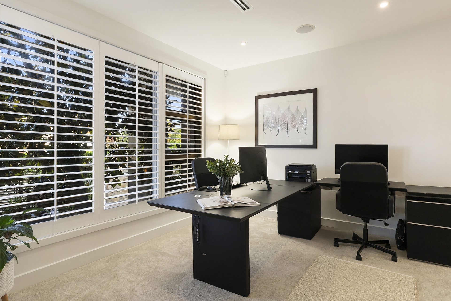 A private 9-seat cinema with surround sound, dedicated home office and multiple living areas provide flexibility for both executive living and family comfort. Sonos speakers are wired throughout, while a gas fireplace adds warmth and ambience.