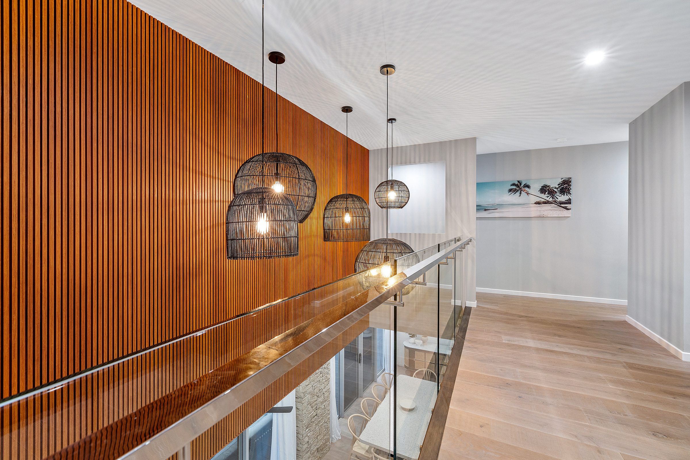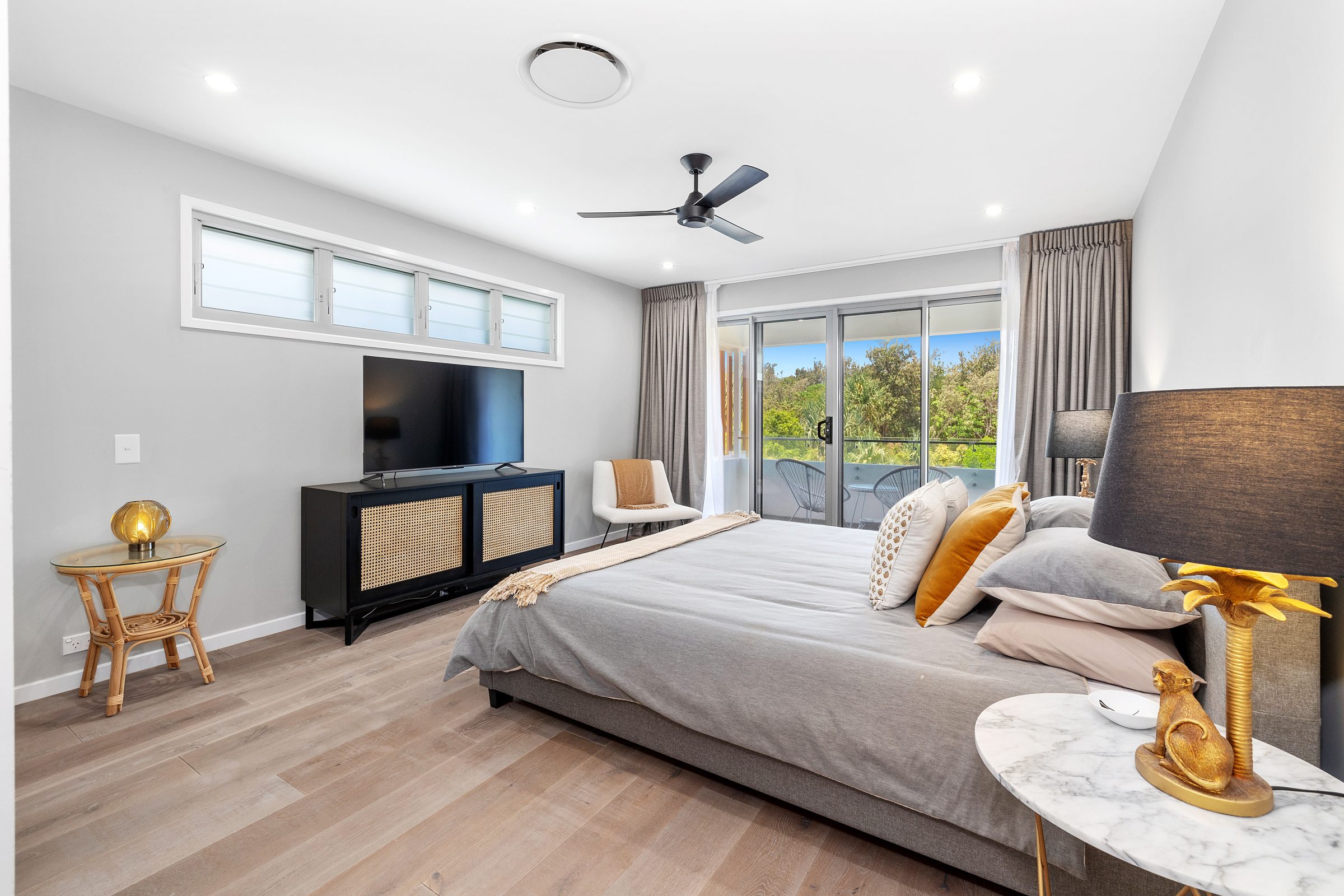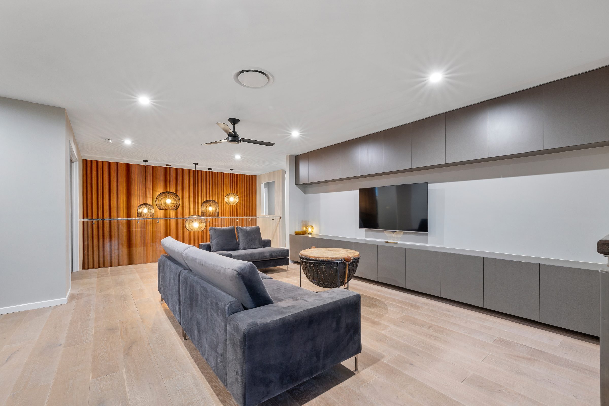 One of the many features of this striking home is the alfresco deck overlooking the sparkling swimming pool. It is a purpose-built space for harmonious indoor-outdoor, relaxed living. Entertain from your built-in BBQ, wine fridge & wet bar. Sliding glass doors connect to both the pool & the ocean front decks, allowing the outdoors in & providing a useable space for all weather conditions. This cleverly designed floor plan incorporates 3 separate living zones to benefit every family age & stage, as well as to accommodate guests in comfort. There’s even a designated yoga or work-out mat for the fitness enthusiasts.
