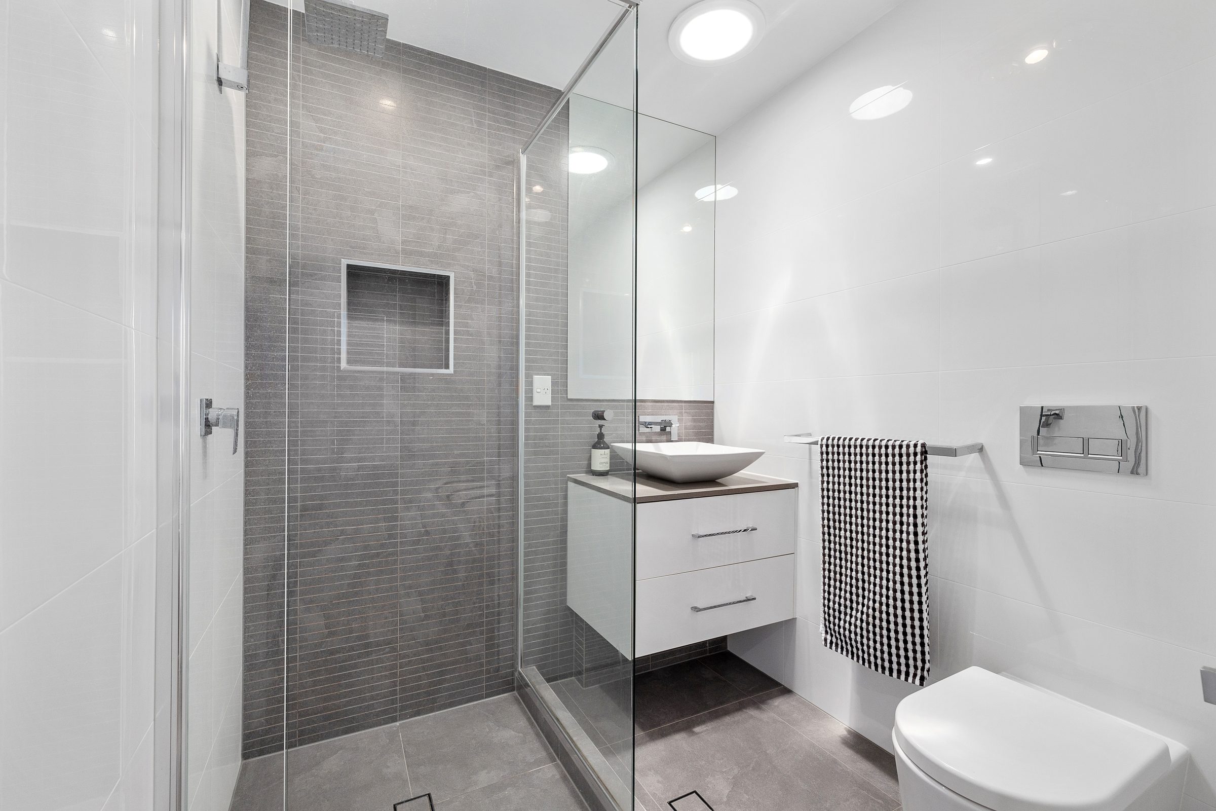 A guest bedroom, or home office on the lower level has access to a full bathroom for guest accommodation, or for the convenience of buyers who work from home.